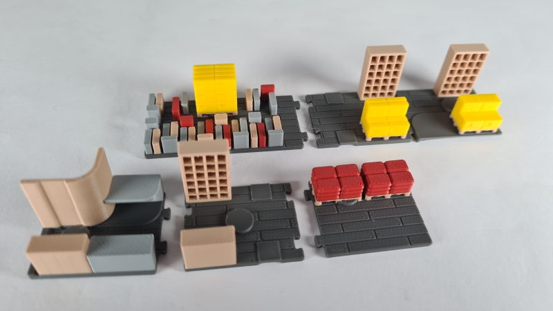 Es wurde versucht, mögliches (druckbares) Zubehör wie Koffer, Schreibtisch, Briefsortierregale, Paletten mit Sackware, Paletten mit Postboxen mit einzudrucken, so dass bei Bedarf nur ein wenig Farbe ins Spiel kommen muss.