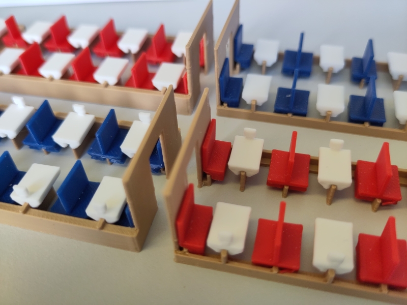 - Montieren Sie die Endsitze ein (jeweils an den Wänden hin inkl. Service-Abteil)