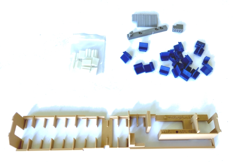 - Setzen Sie jetzt das Gehäuse vorsichtig auf den Wagenboden mit Einrichtung, die Spante muss genau in die vorgesehene Ausnehmung. Achten Sie auf die Drehgestelle (diese müssen normal also in Fahrtrichtung stehen). Das Gehäuse müsste jetzt problemlos auf dem Fahrgestell einrasten.