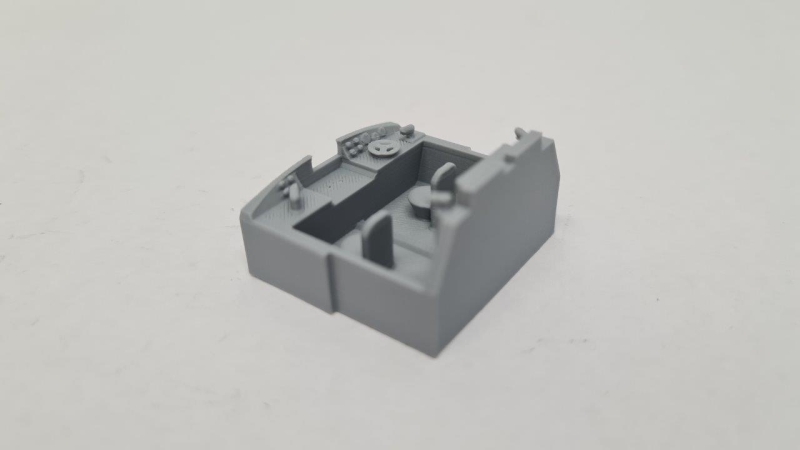 Feine Details wie z.B. Feuerlöscher oder ein Schubrad sind erkennbar. Da es sich um sehr, sehr feine Details wie Feuerlöscher oder Schubrad handelt, MUSS beim Einbau modellbauerisches Feingefühl und Vorsicht vorhanden sein! Die Layerschichtdicke des 3D-Drucks ist nur 0.08mm, also sehr fein!