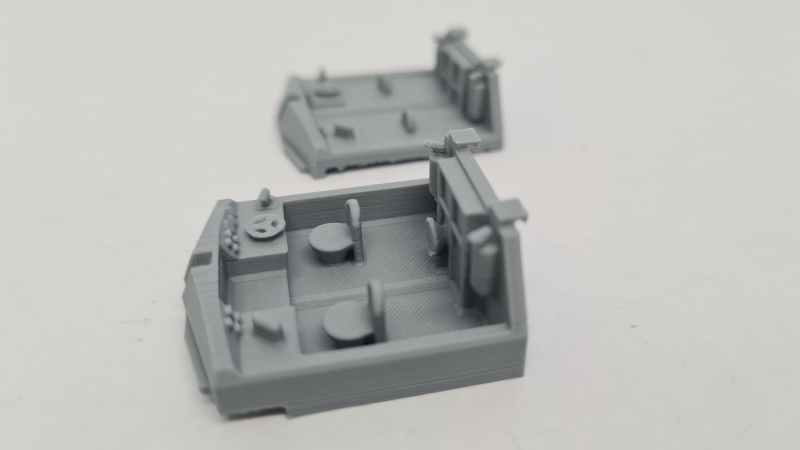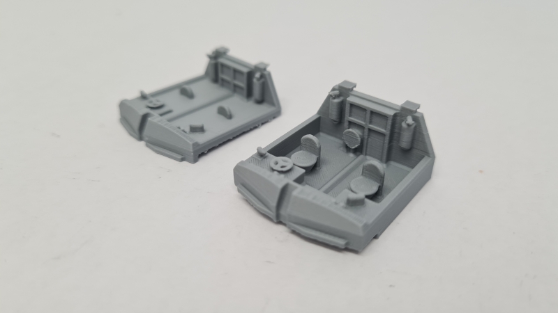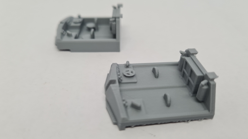Feine Details wie z.B. Feuerlöscher oder ein Schubrad sind erkennbar. Da es sich um sehr, sehr feine Details handelt MUSS beim Einbau modellbauerisches Feingefühl und Vorsicht vorhanden sein! Die Layerschichtdicke des 3D-Drucks ist nur 0.08mm, also sehr fein!