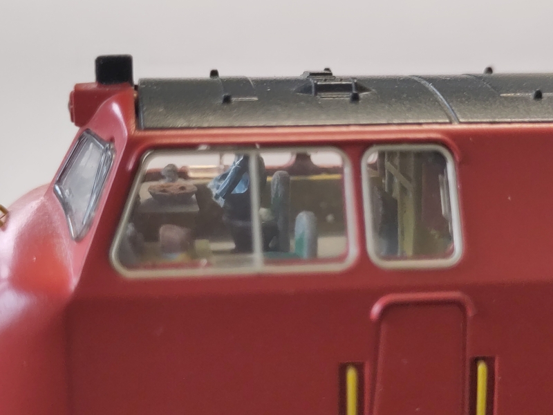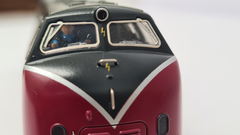 Für die Bilder wurde ein Lokführer der Fa. NOCH in H0 verwendet - dieser ist NICHT im Lieferumfang enthalten. Diese Figur ist aber massstäblich zu gross, daher wurde er unten sehr weit abgeschnitten. Im Detail von aussen ist er aber wieder sehr schön zu erkennen, daher wäre diese Variante zu empfehlen. Normalerweise ist die Empfehlung 1:100.