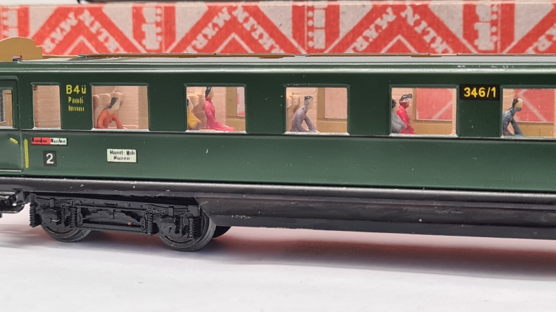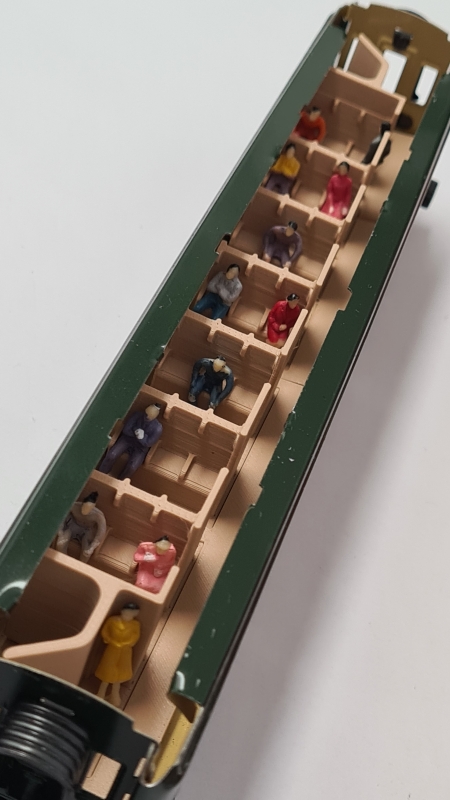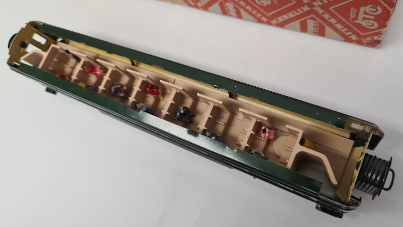 Eine LED Beleuchtungsschiene (z.B. ESU Innenbeleuchtung (z.B. 50708) kann bei diesem Wagen auf die Querstreben des Wagons unter dem Dach platziert werden. Hierbei ist auf die Isolierung der Masse durch das Dach und die Streben zu achten! In den Toiletten hat es Platz für einen Puffer-Elko.