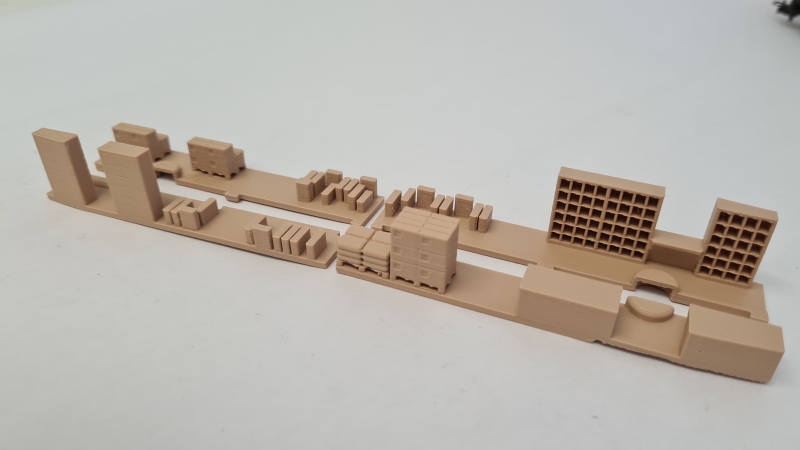 Es wurde versucht, mögliches (druckbares) Zubehör wie Koffer, Schreibtisch, Briefsortierregale, Paletten mit Sackware, Paletten mit Postboxen mit einzudrucken, so dass bei Bedarf nur ein wenig Farbe ins Spiel kommen muss.