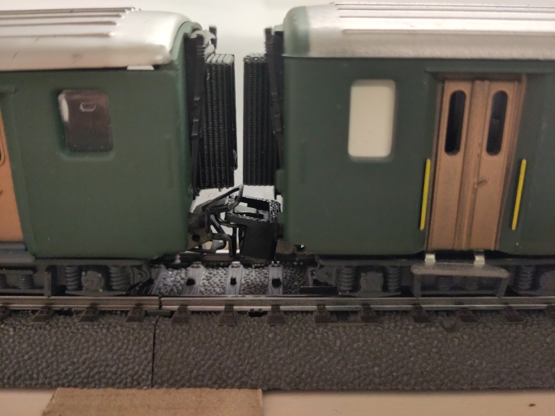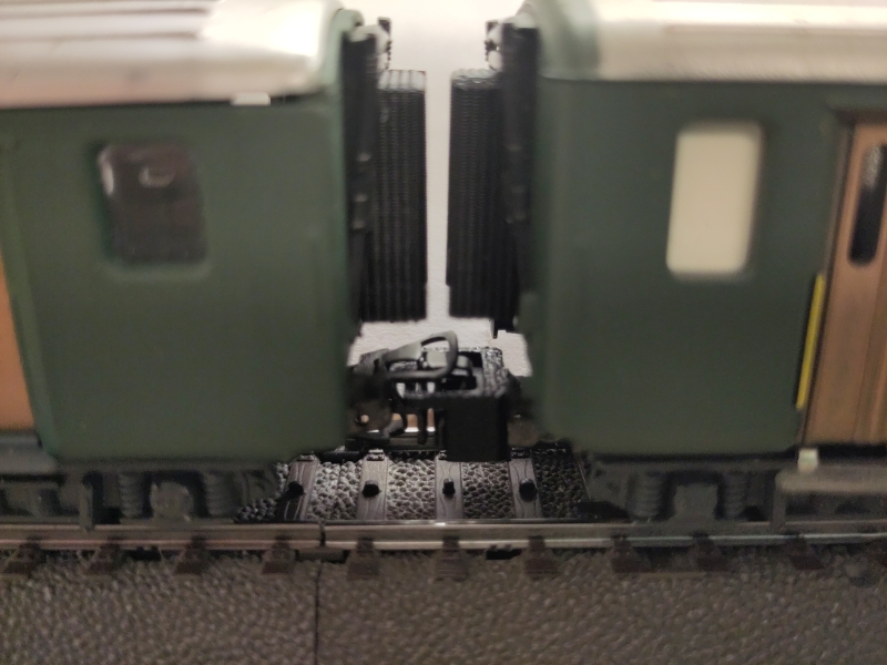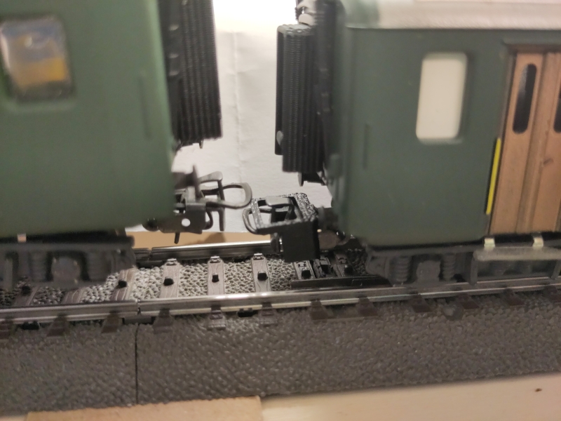 - Setzen Sie die Übergänge ein. Die Ausnehmung am unteren Rand muss in Richtung Wagenmitte zeigen, das Trittbrett zum Wagenende hin.